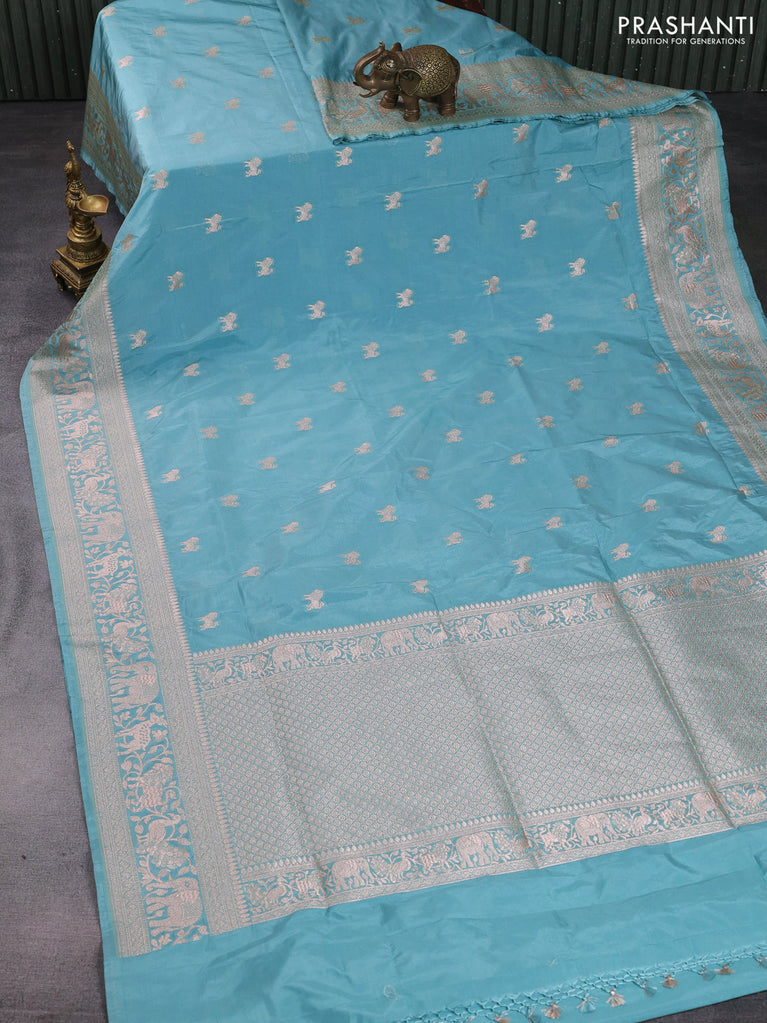 Banarasi semi katan saree teal blue with zari woven buttas and zari woven border