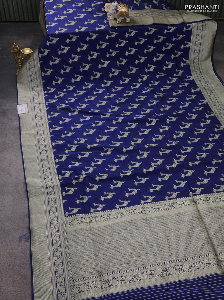Banarasi semi katan silk saree dark blue with zari woven buttas and zari woven border