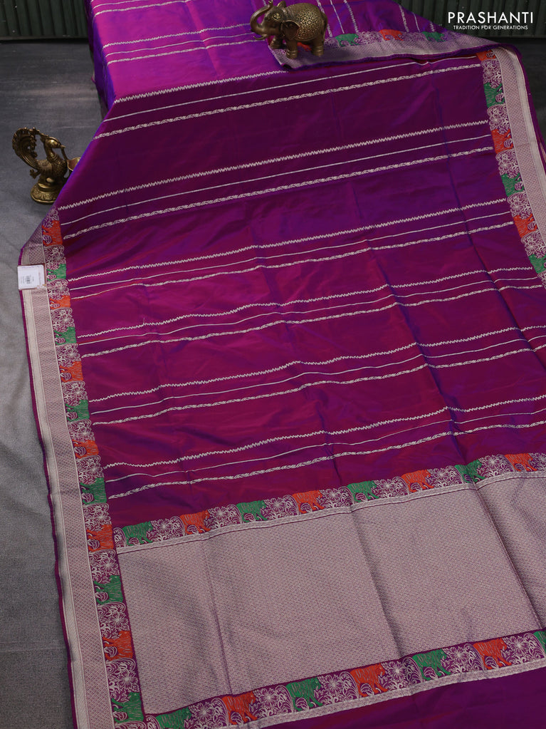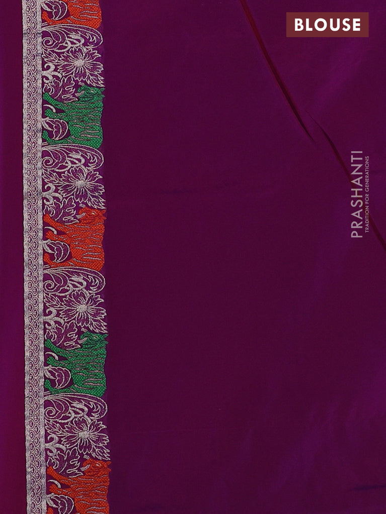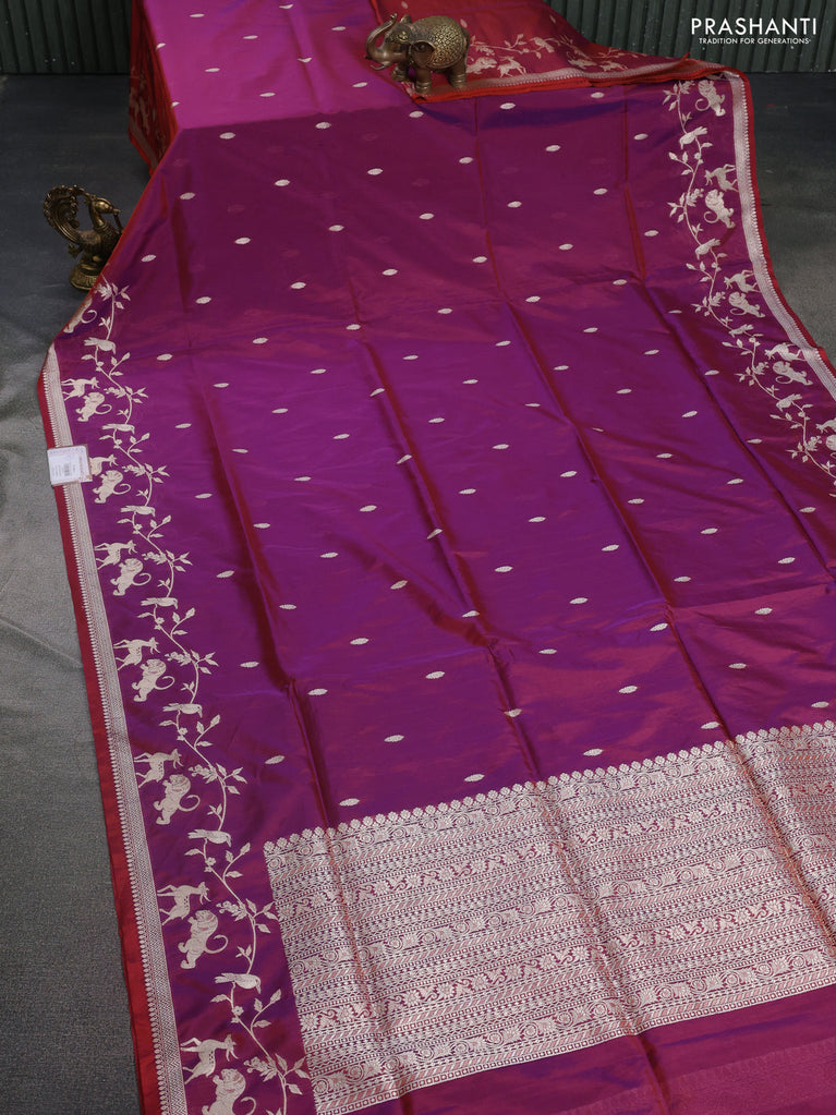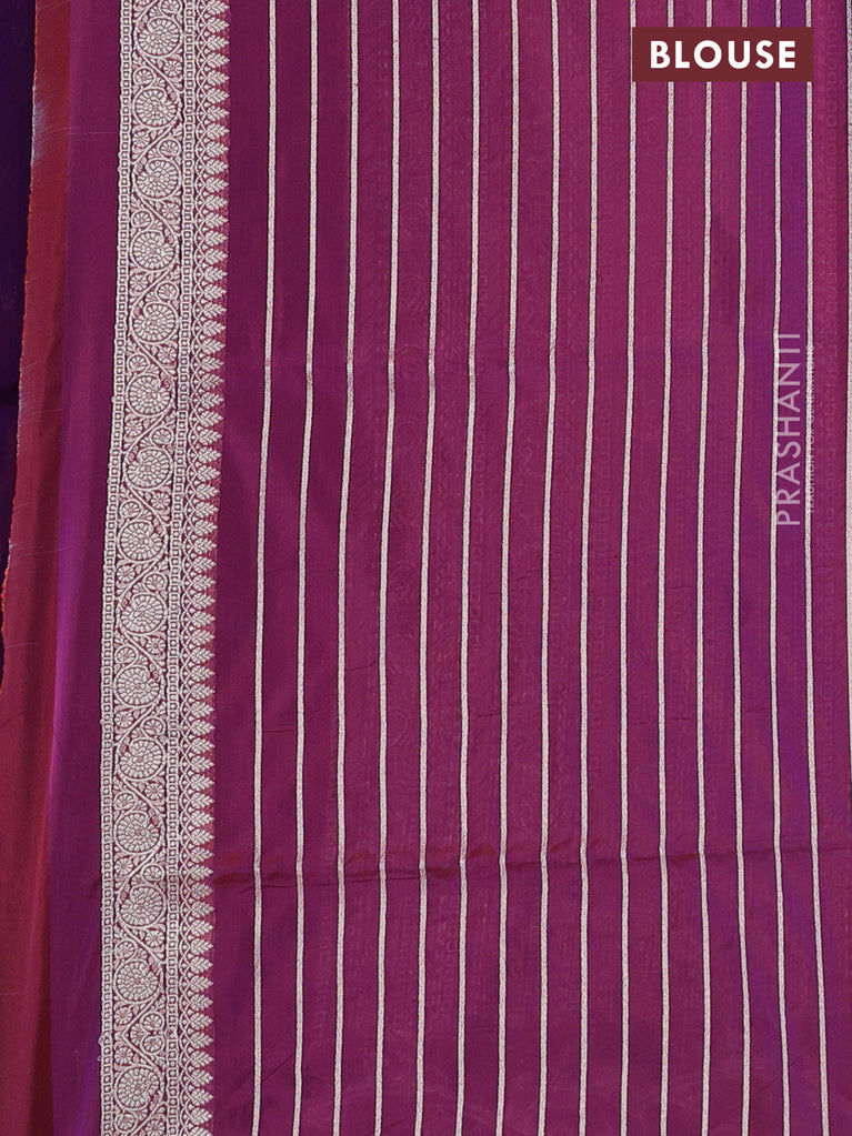 Banarasi semi katan silk saree dual shade of maroonish purple with allover silver & gold zari weaves and zari woven border