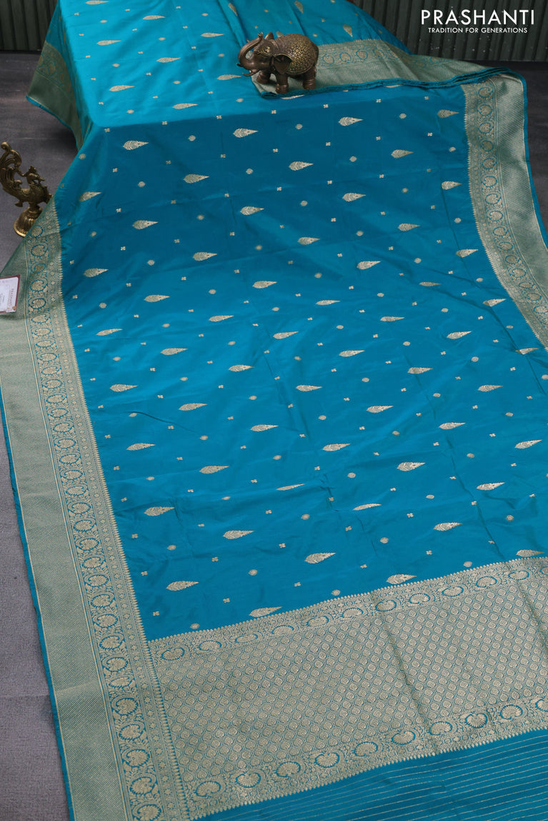 Banarasi semi katan silk saree dual shade of teal blue with zari woven buttas and rich zari woven border