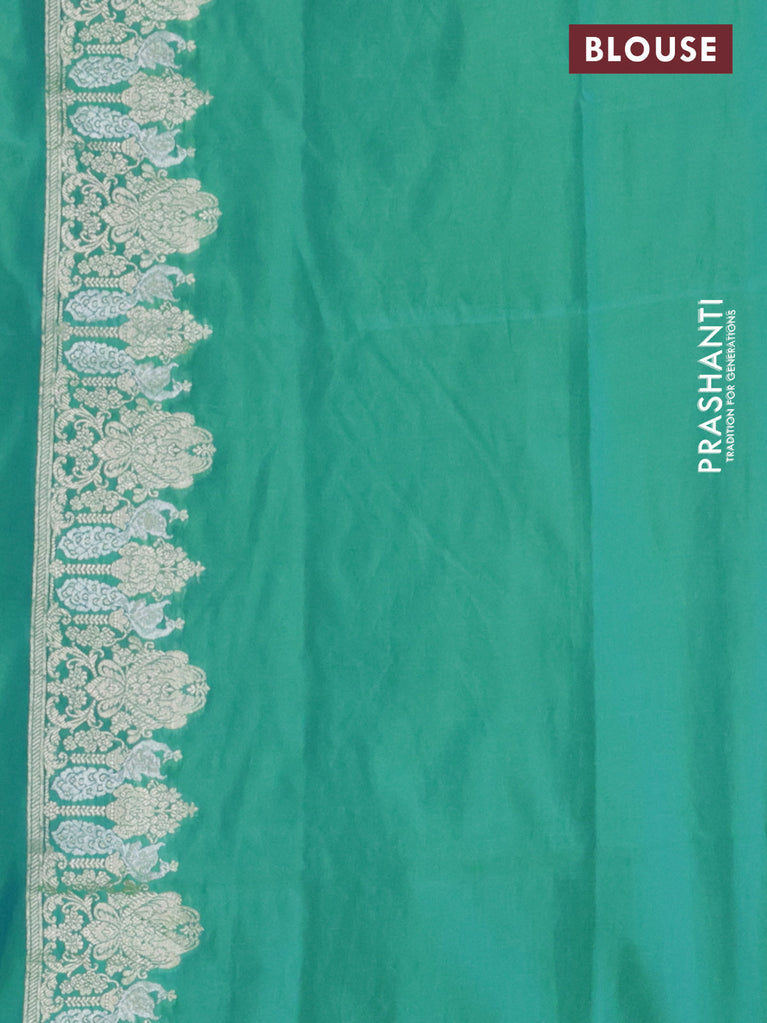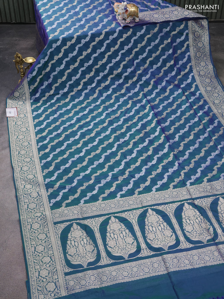 Banarasi semi katan silk saree dual shade of teal bluish green with allover silver & gold zari weaves and zari woven border