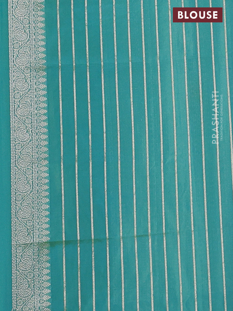 Banarasi semi katan silk saree dual shade of teal bluish green with allover silver & gold zari weaves and zari woven border