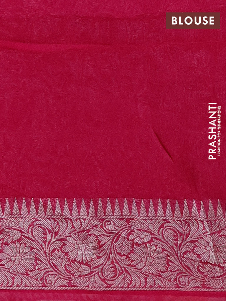 Banarasi semi raw silk saree pink with allover silver zari woven brocade weaves and floral design paithani border