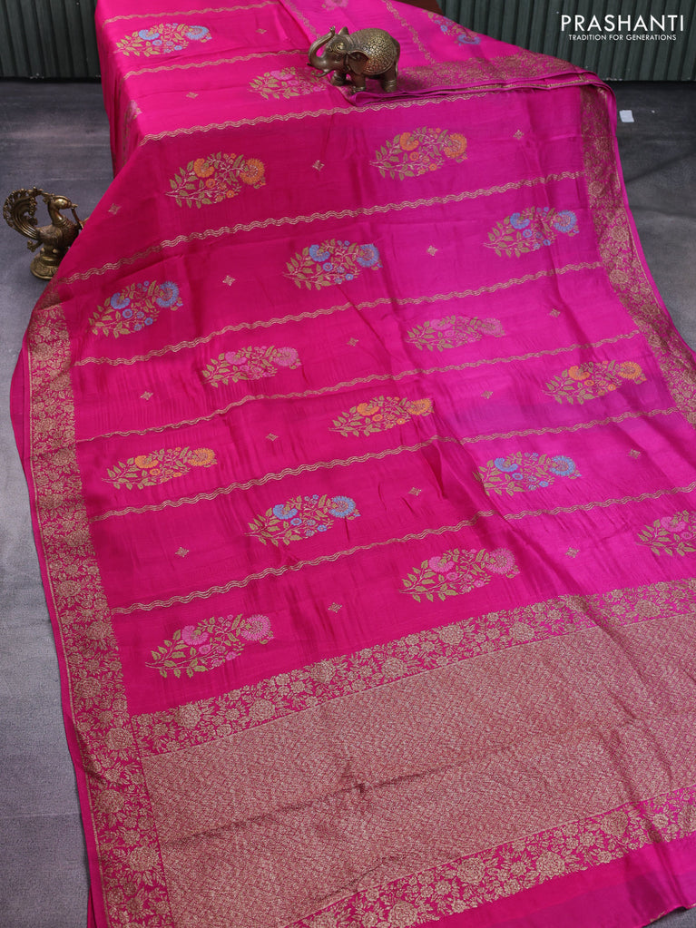 Banarasi semi raw silk saree pink with allover zari woven brocade weaves and floral design paithani border