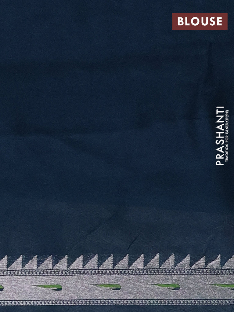 Banarasi semi raw silk saree peacock blue with allover zari woven paithani weaves and zari woven border
