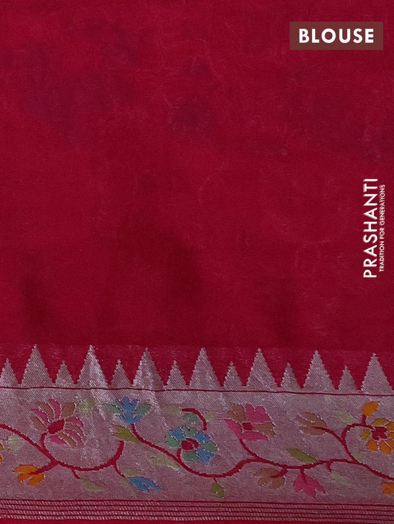 Banarasi semi raw silk saree pink with allover silver zari woven paithani weaves and silver zari woven border