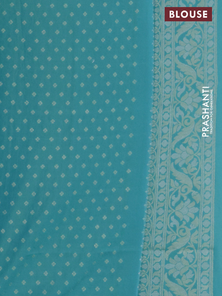 Banarasi semi katan silk saree teal bluish green with zari woven buttas and rich zari woven border