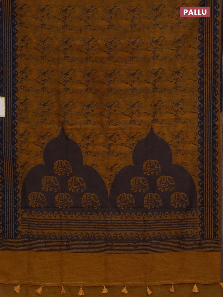 Banarasi semi matka saree dark mustard and blue with allover thread weaves and thread woven border