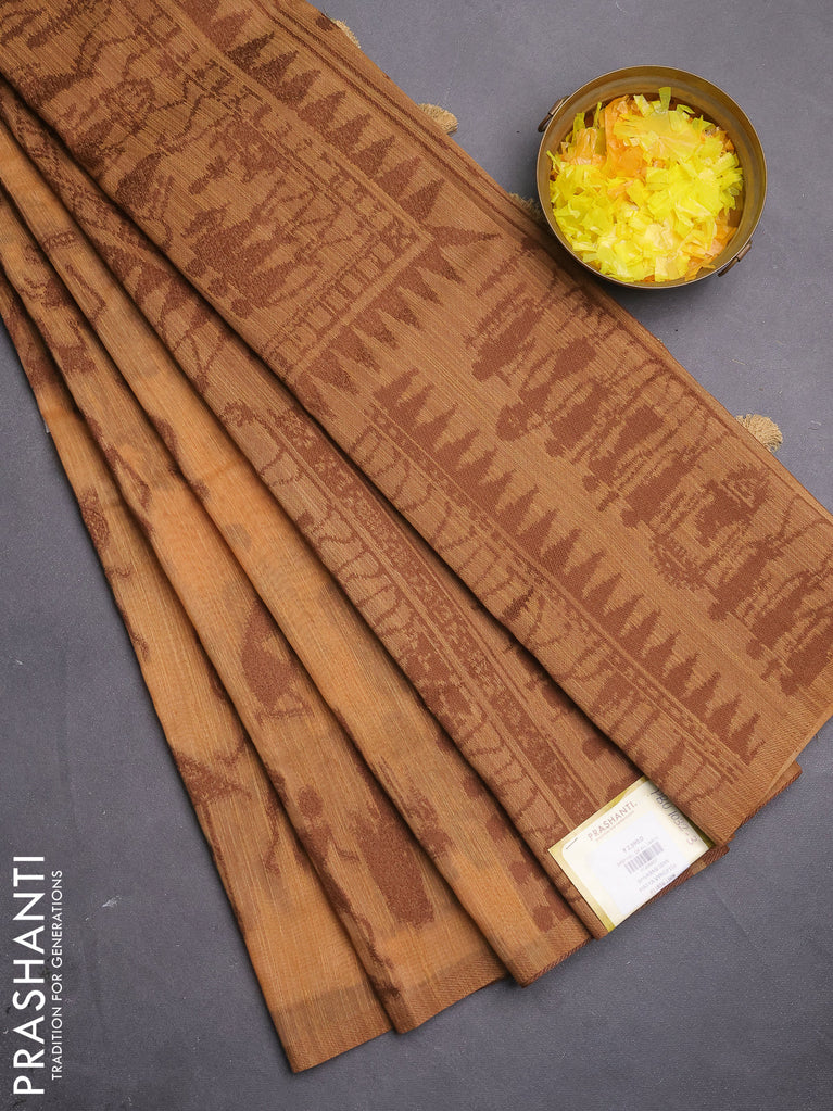 Banarasi semi matka saree dark sandal with allover thread weaves in borderless style