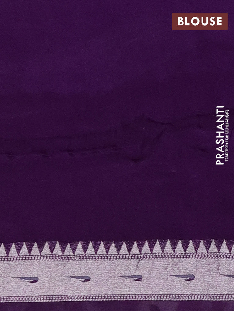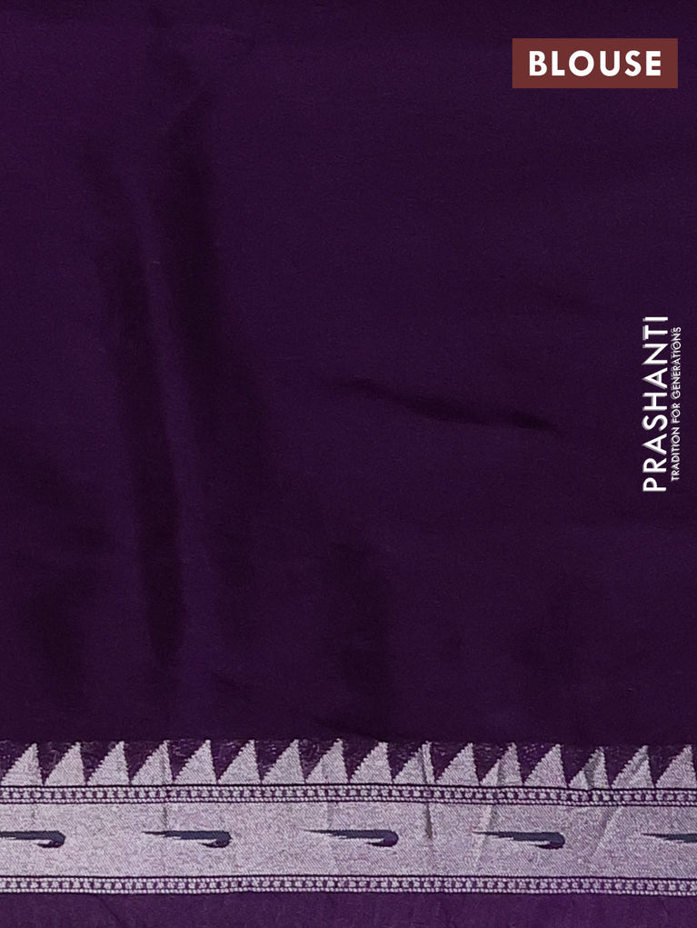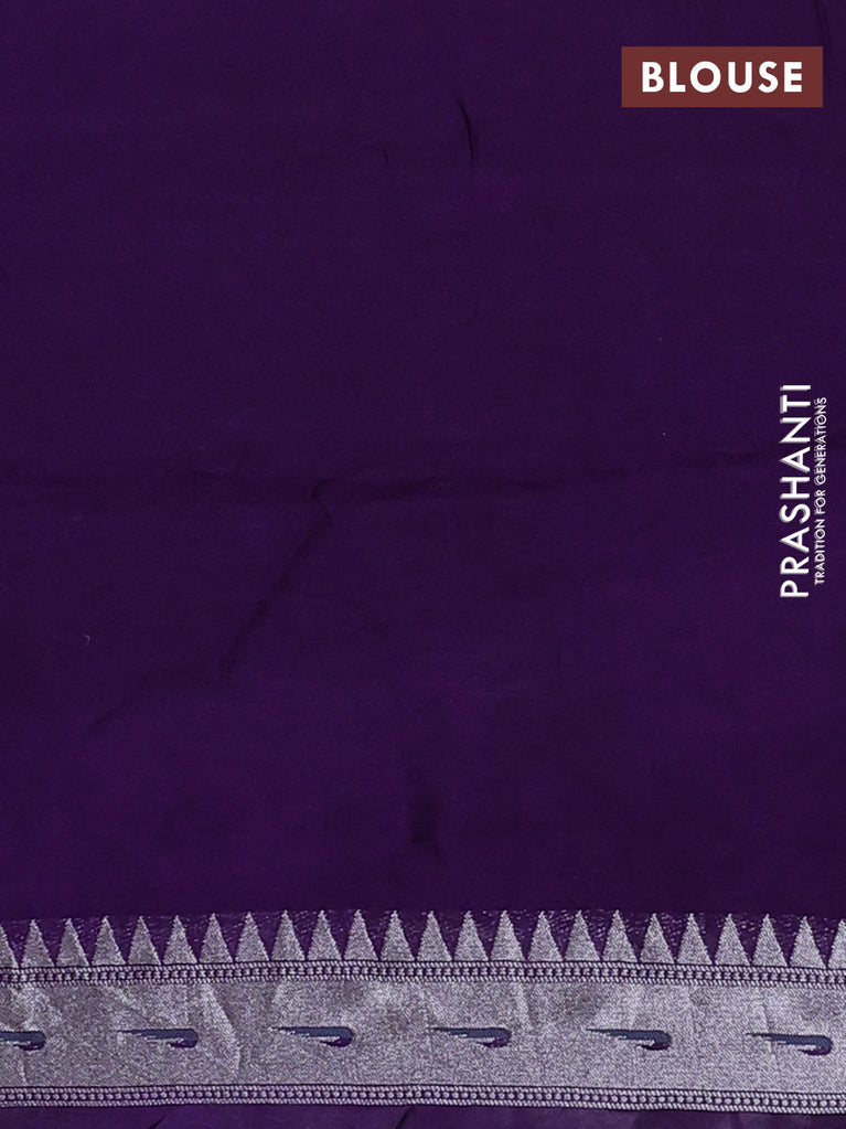 Banarasi semi raw silk saree violet with allover silver zari woven paithani weaves and silver zari woven border