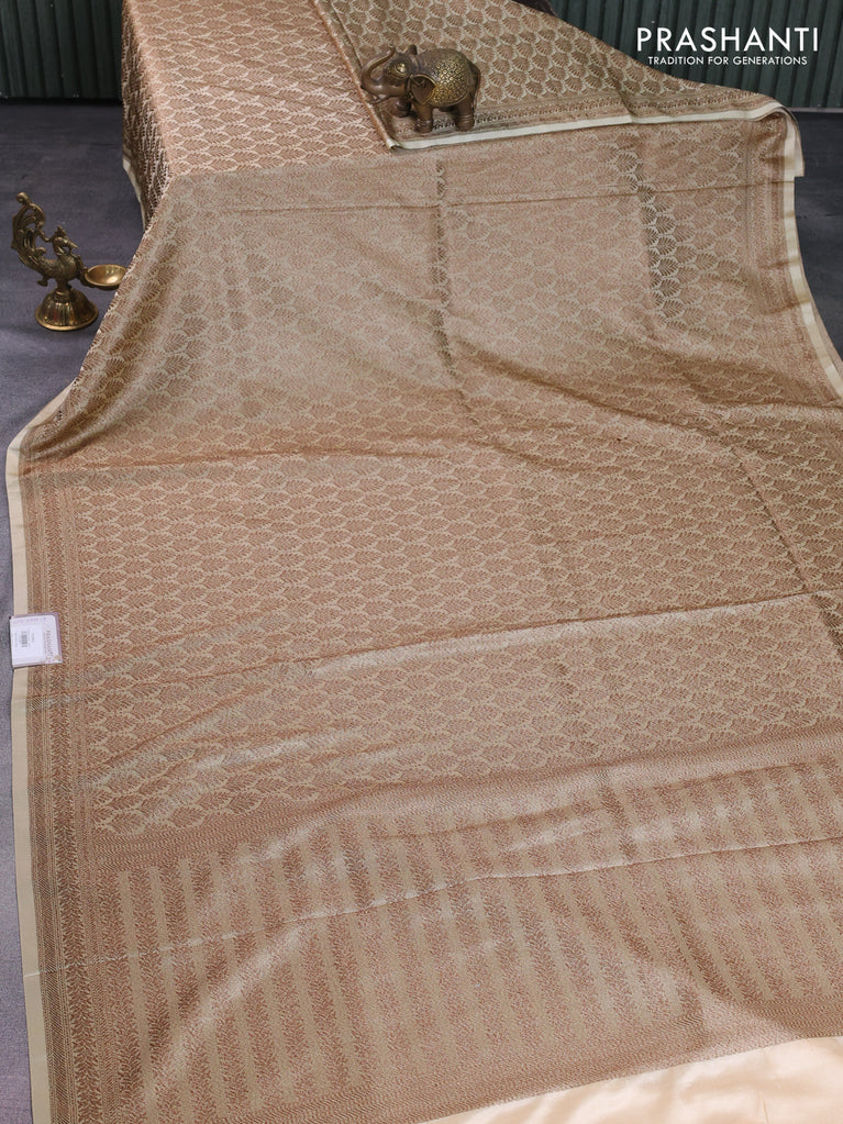 Banarasi semi silk saree cream with allover thread & zari weaves and woven border