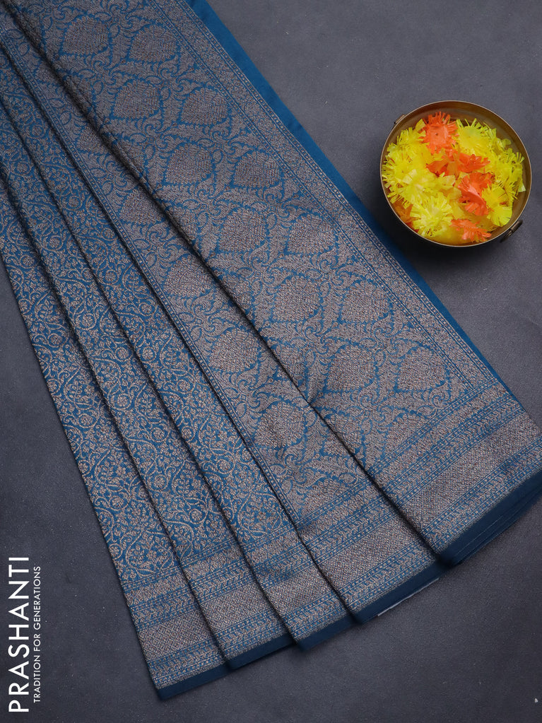 Banarasi semi silk saree blue with allover thread & zari weaves and woven border