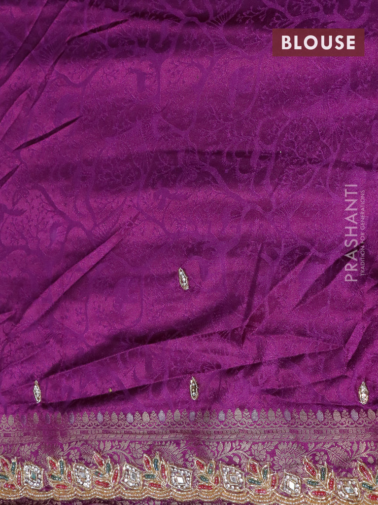 Banarasi silk saree purple with allover zari woven brocade weaves and zaridosi gotapatti work border
