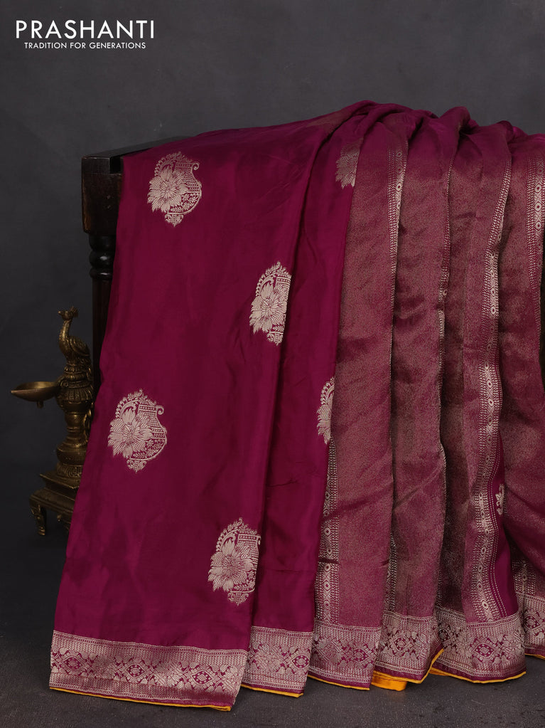 Banarasi silk saree purple and yellow with allover zari weaves and zari woven border