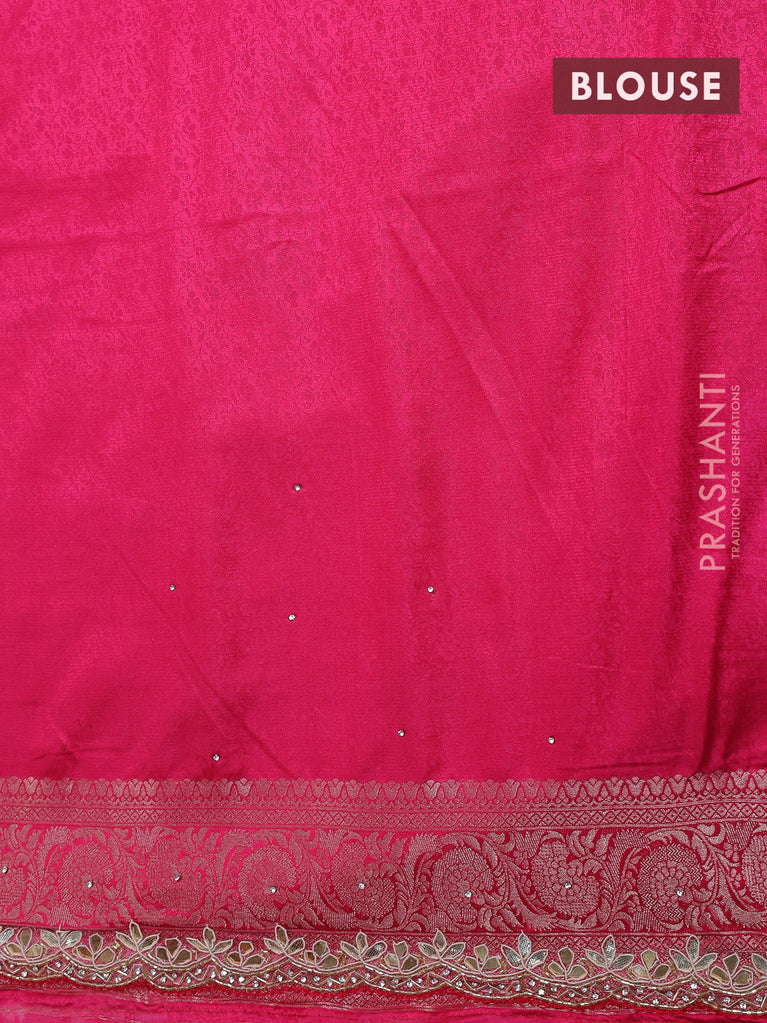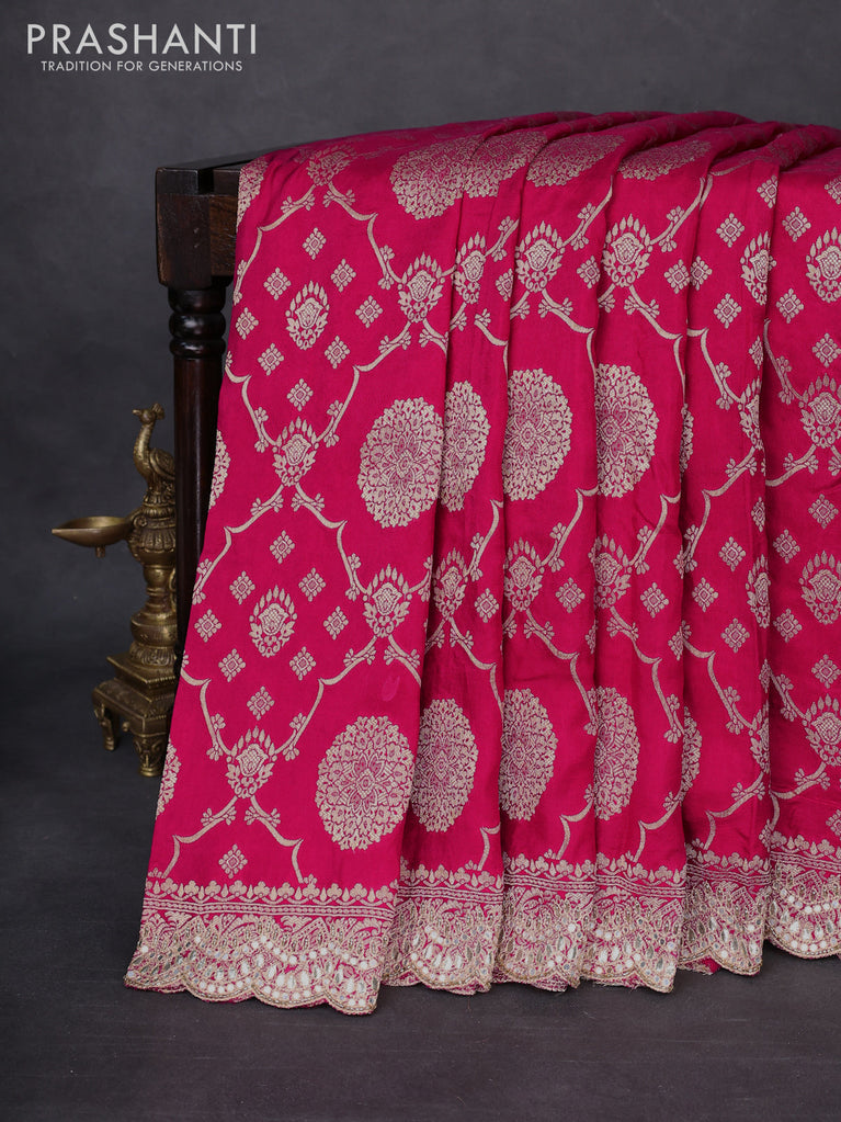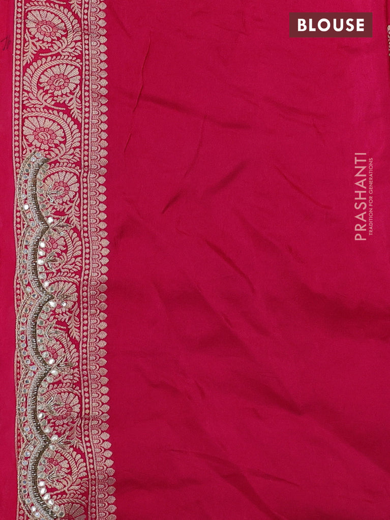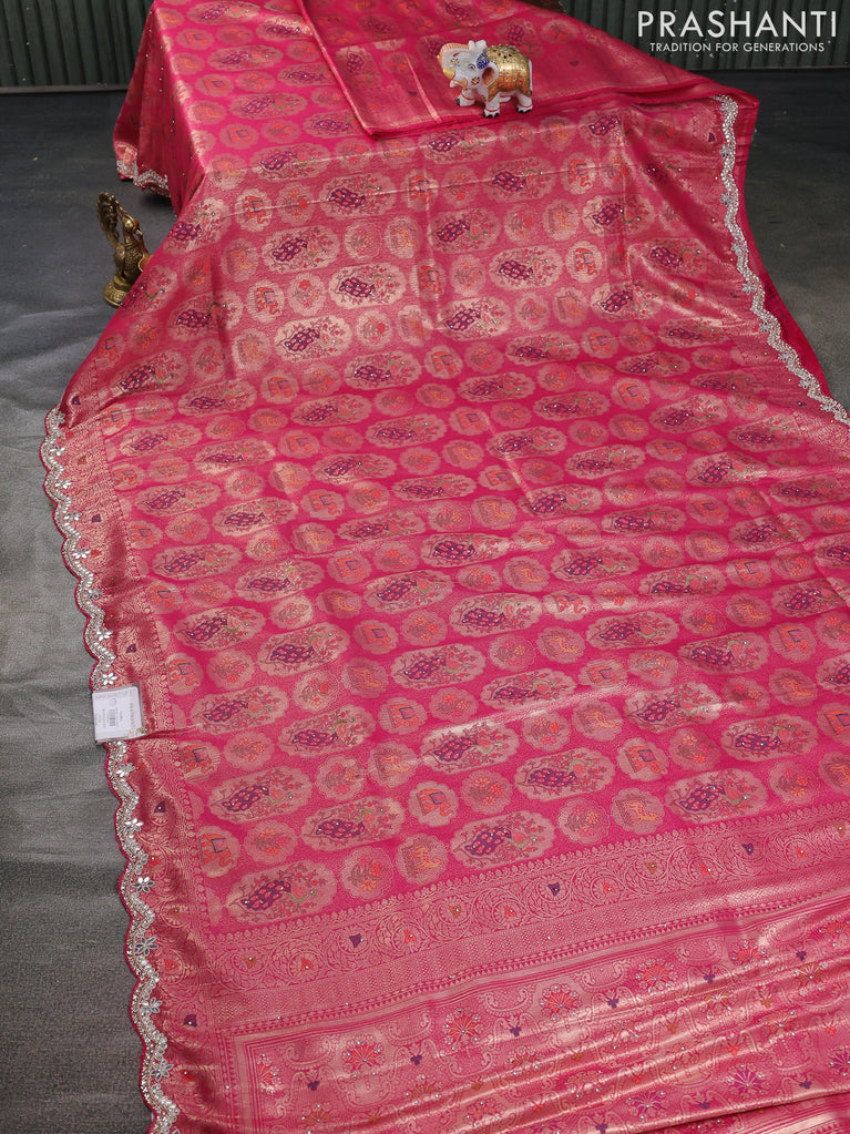 Banarasi silk saree pink with allover zari woven brocade weaves and zaridosi gotapatti work border