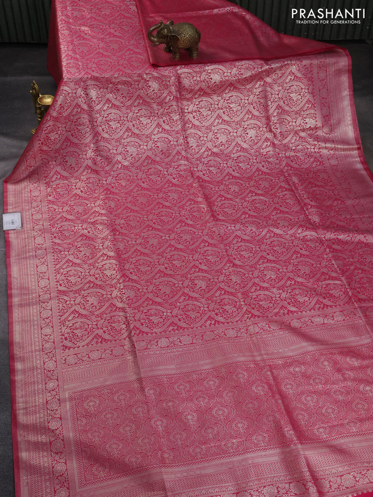 Banarasi silk saree pink with allover silver zari woven brocade weaves and silver zari woven border