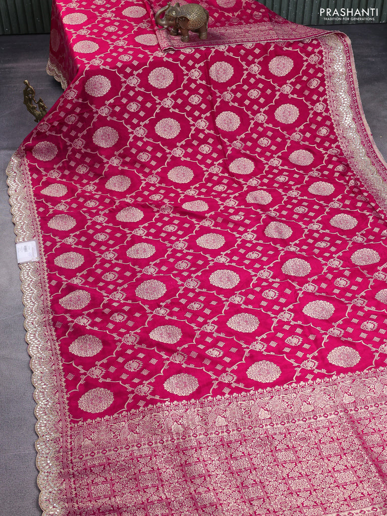 Banarasi silk saree pink with allover zari woven jaal weaves and gotapatti work border
