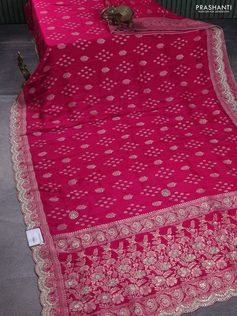 Banarasi silk saree pink with allover zari woven butta weaves and gotapatti work border