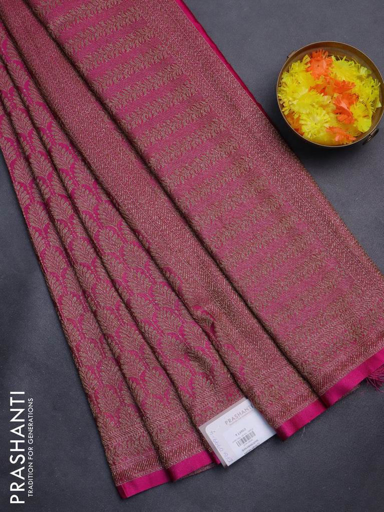 Banarasi semi silk saree pink and violet with allover thread & zari weaves and woven border