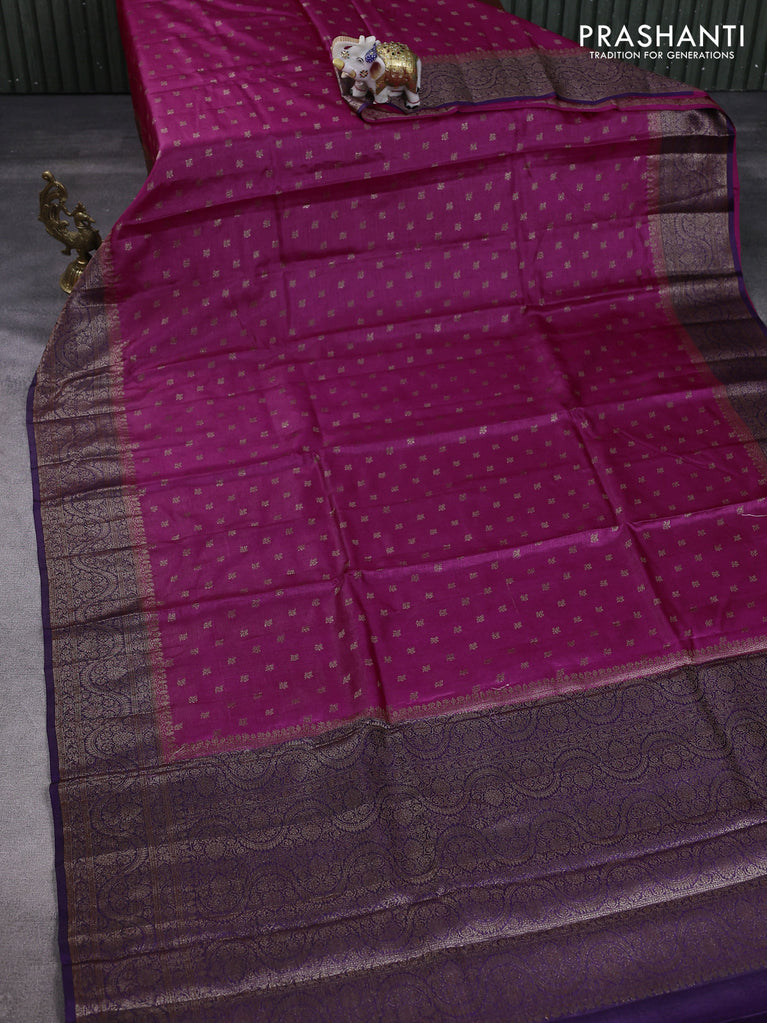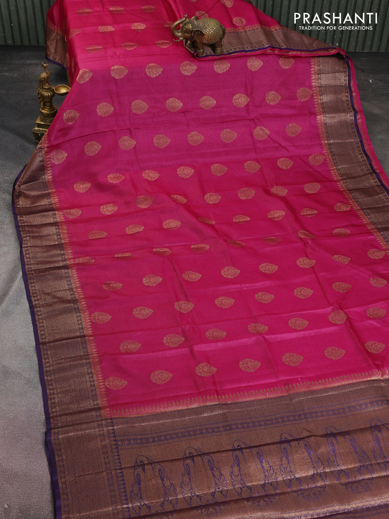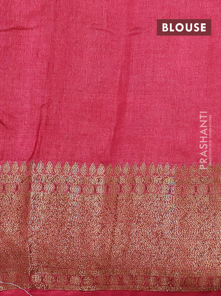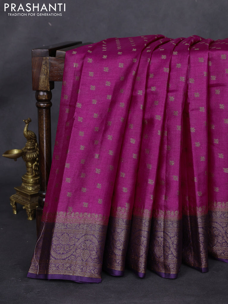 Banarasi tussar silk saree magenta pink and purple with thread & zari woven buttas and woven border