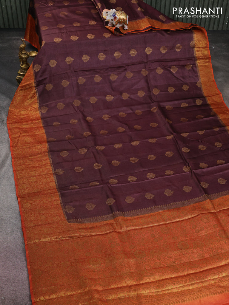 Banarasi tussar silk saree coffee brown and rust shade with thread & zari woven floral buttas and woven border