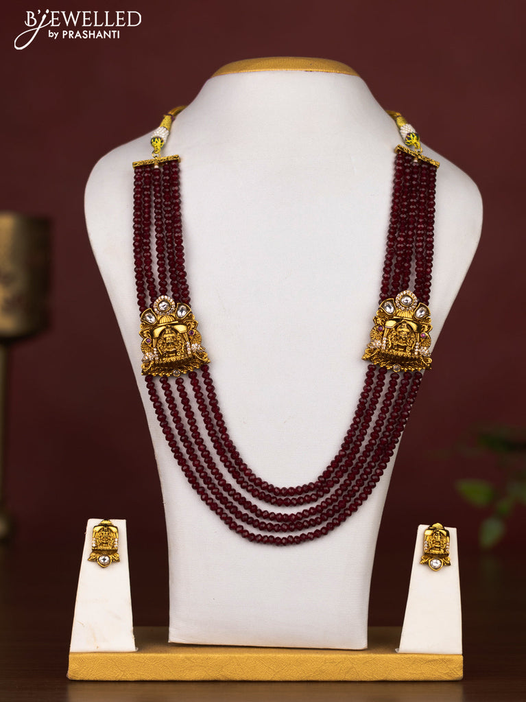 Beaded multilayer maroon necklace lakshmi design with cz stones