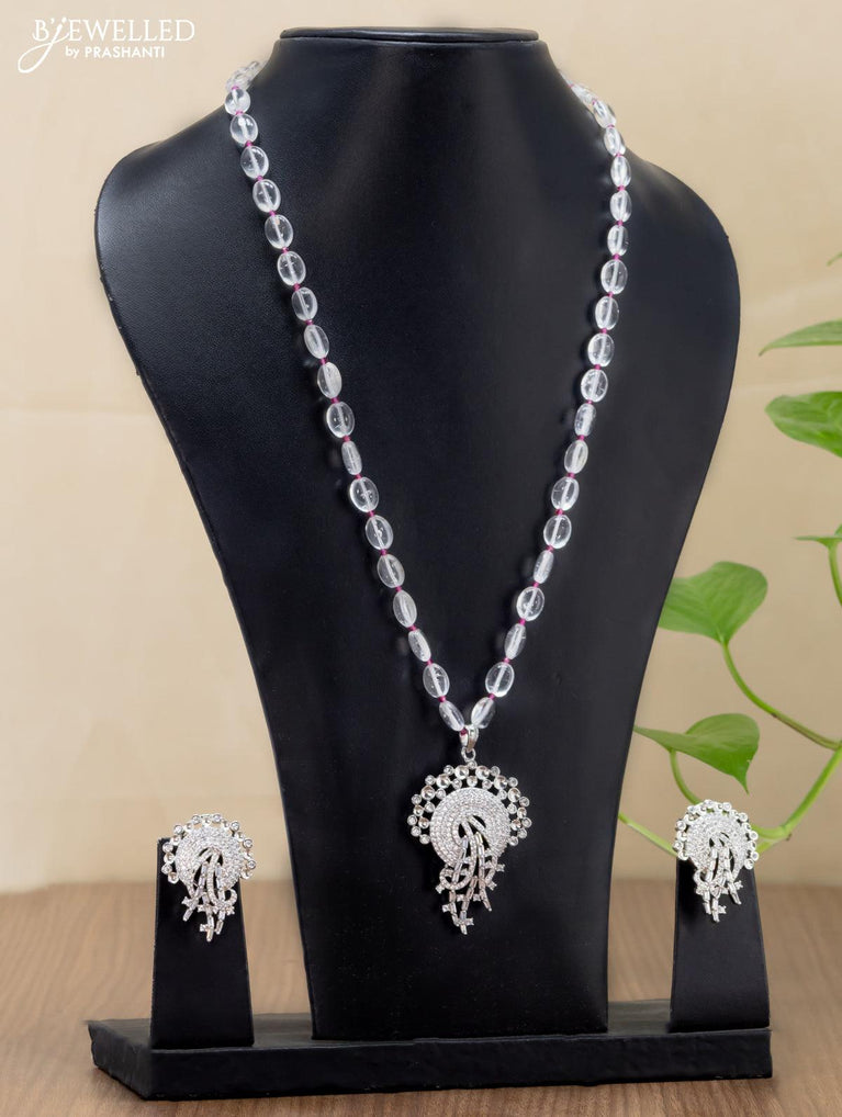 Beaded pink necklace krishna pendant with kemp & cz stones and pearl hangings