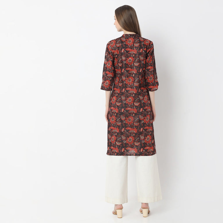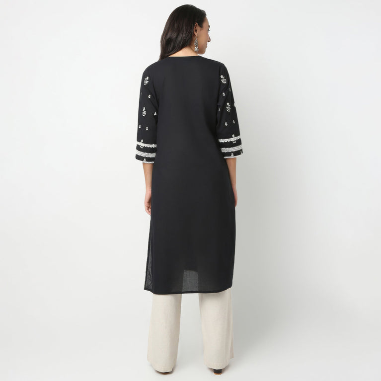 Below Knee Three-Fourth Sleeve Straight Fit Embroidered Kurta