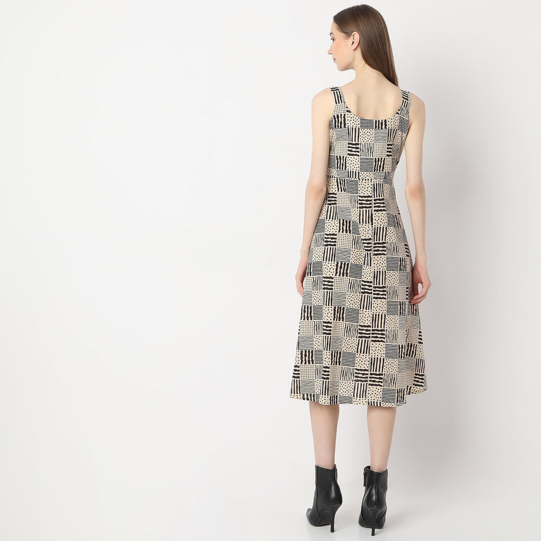 Below Knee Sleeveless Flare Fit Printed Kurta