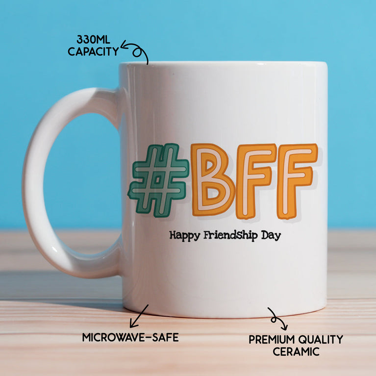 Specifications:Content on the mug - #BFF Happy Friendship DayThe capacity of the mug - 330 mlMaterial - Ceramic The mug is microwave safe.