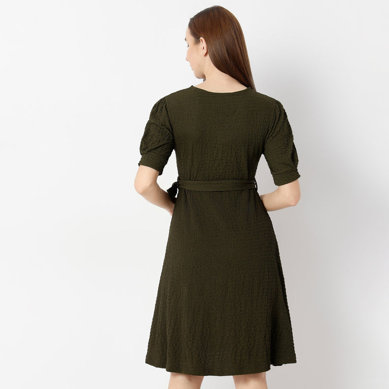 Betty V-Neck Short Dress With Belt Detail At Waist