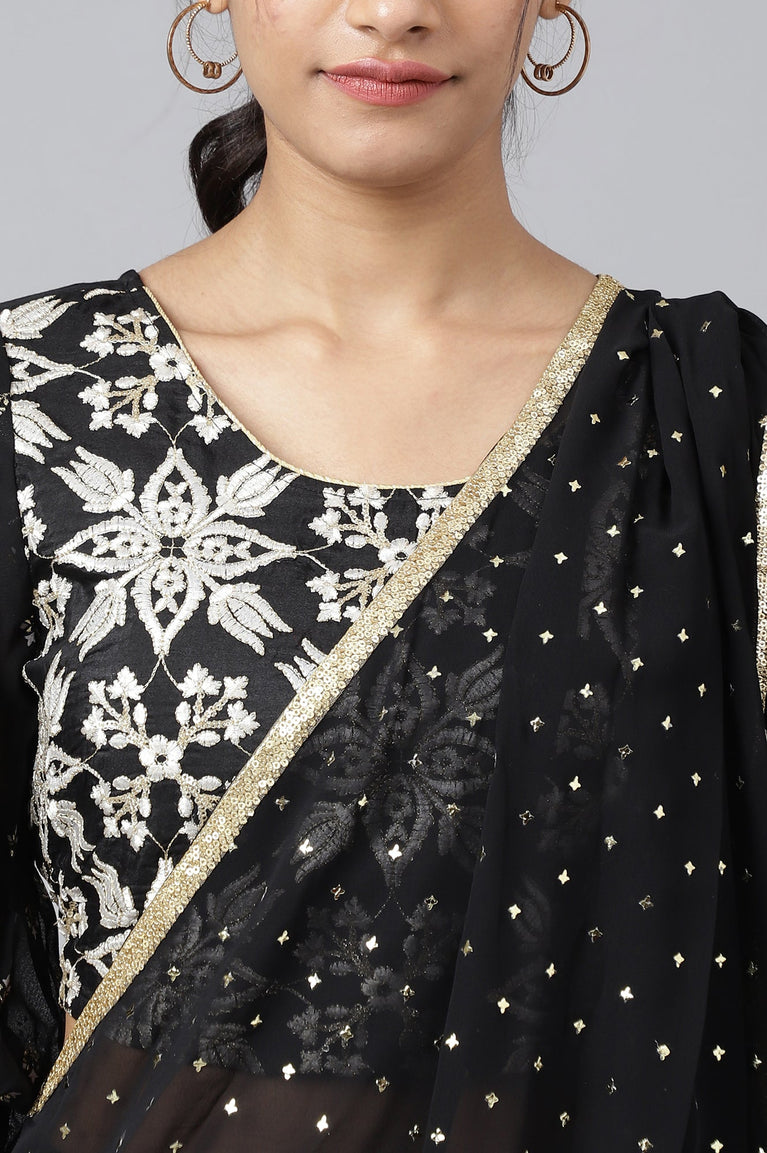 Black Embroidered Top With Semi Flared Palazzo And Dupatta