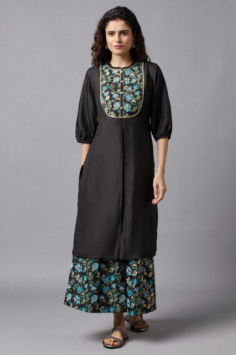 Black Embroidered Straight Kurta with Straight Pant and Dupatta Set