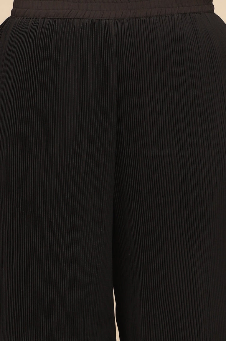 The Black Embellished Straight Kurta and Pleated Flared Palazzo Set is a perfect blend of sophistication and festive charm. The straight-cut kurta is adorned with intricate foil prints and delicate embellishments, adding a subtle shimmer and elegance. Paired with pleated flared palazzo pants, the ensemble offers a flowy and graceful silhouette that enhances movement and comfort. The matching dupatta, featuring refined detailing, completes the look with a touch of finesse. Ideal for special occasions and celebrations, this set effortlessly combines traditional aesthetics with contemporary style.