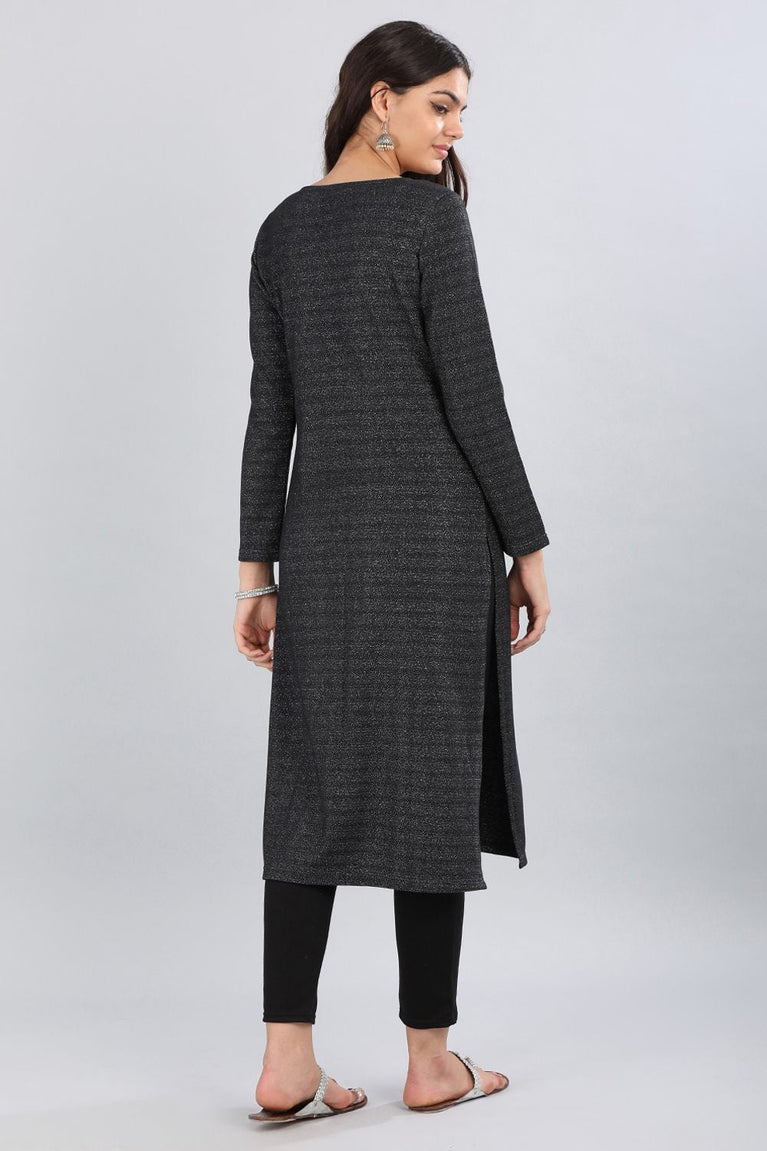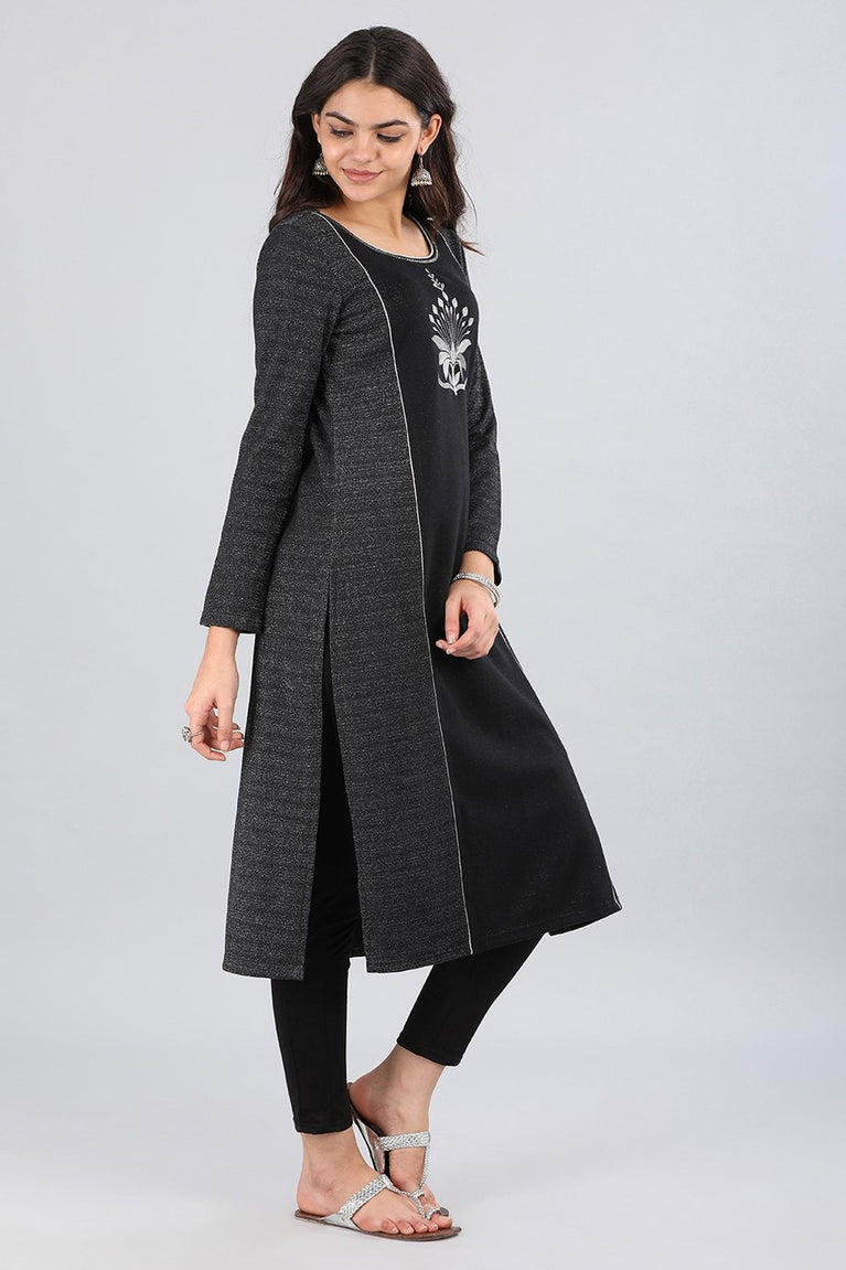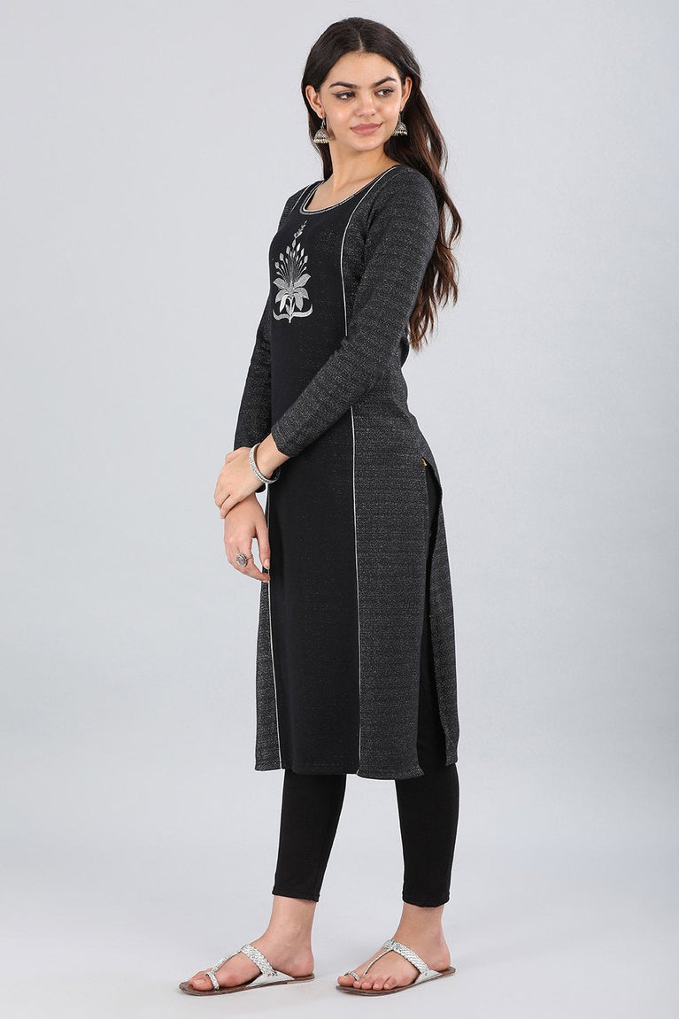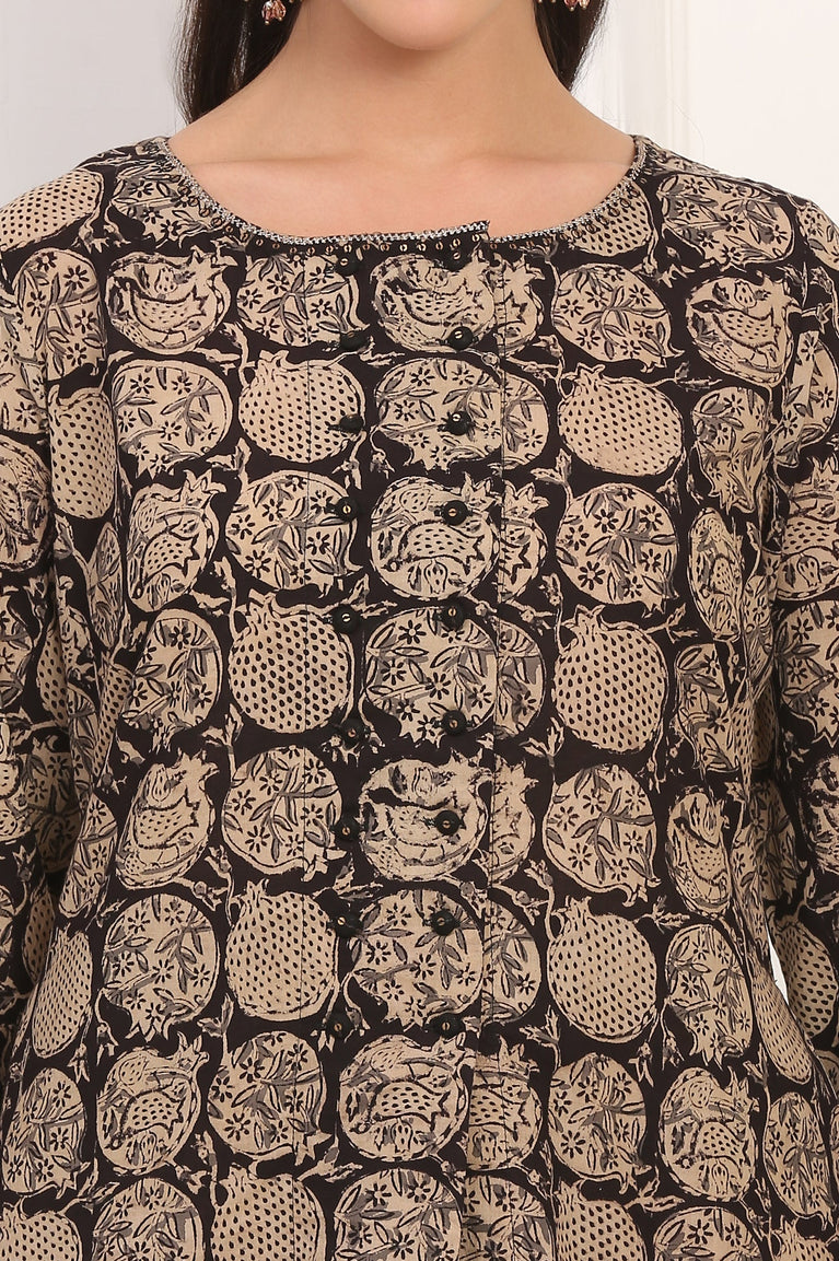 Black Kalamkari Printed Straight Kurta in Cotton Slub