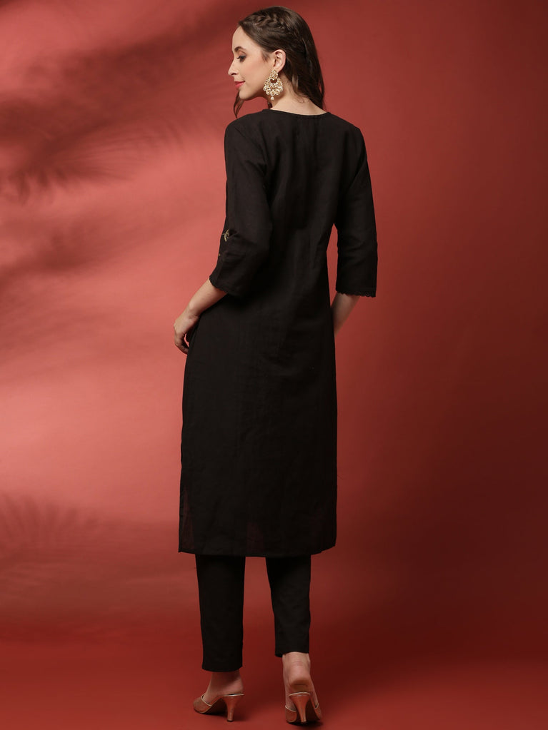 Black Lace Cotton Blend Straight Kurta and Palazzo Set