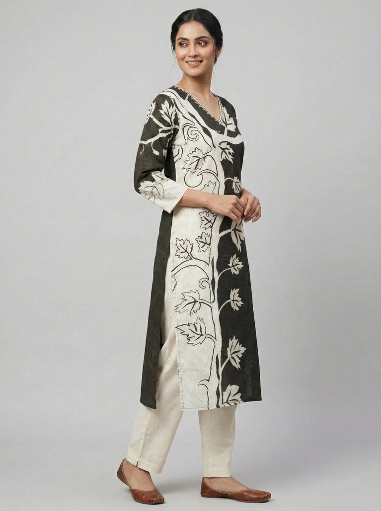 Black Printed Stylized Round Neck kurta Set