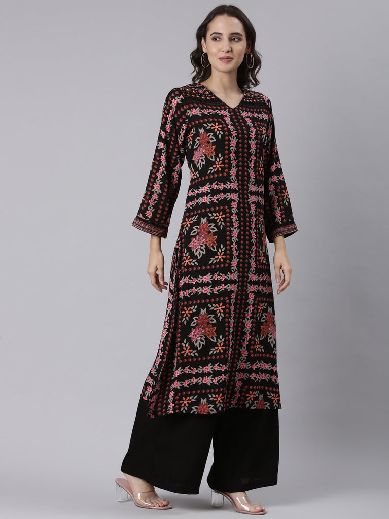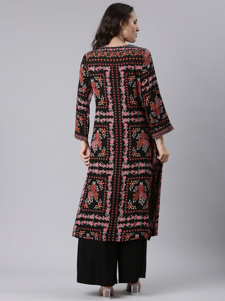 Black Rayon Floral Digital Print Kurta