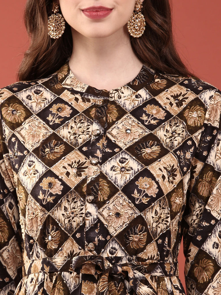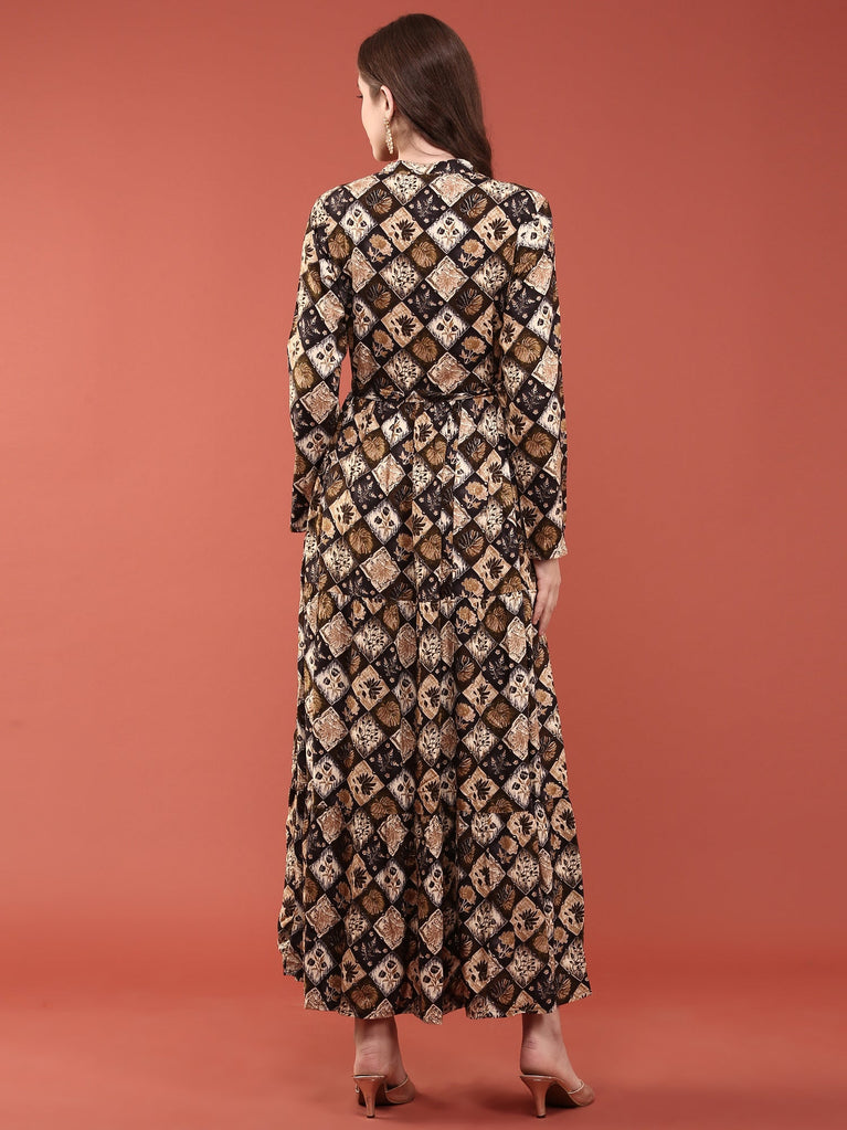 Black Rayon Printed Long Dress