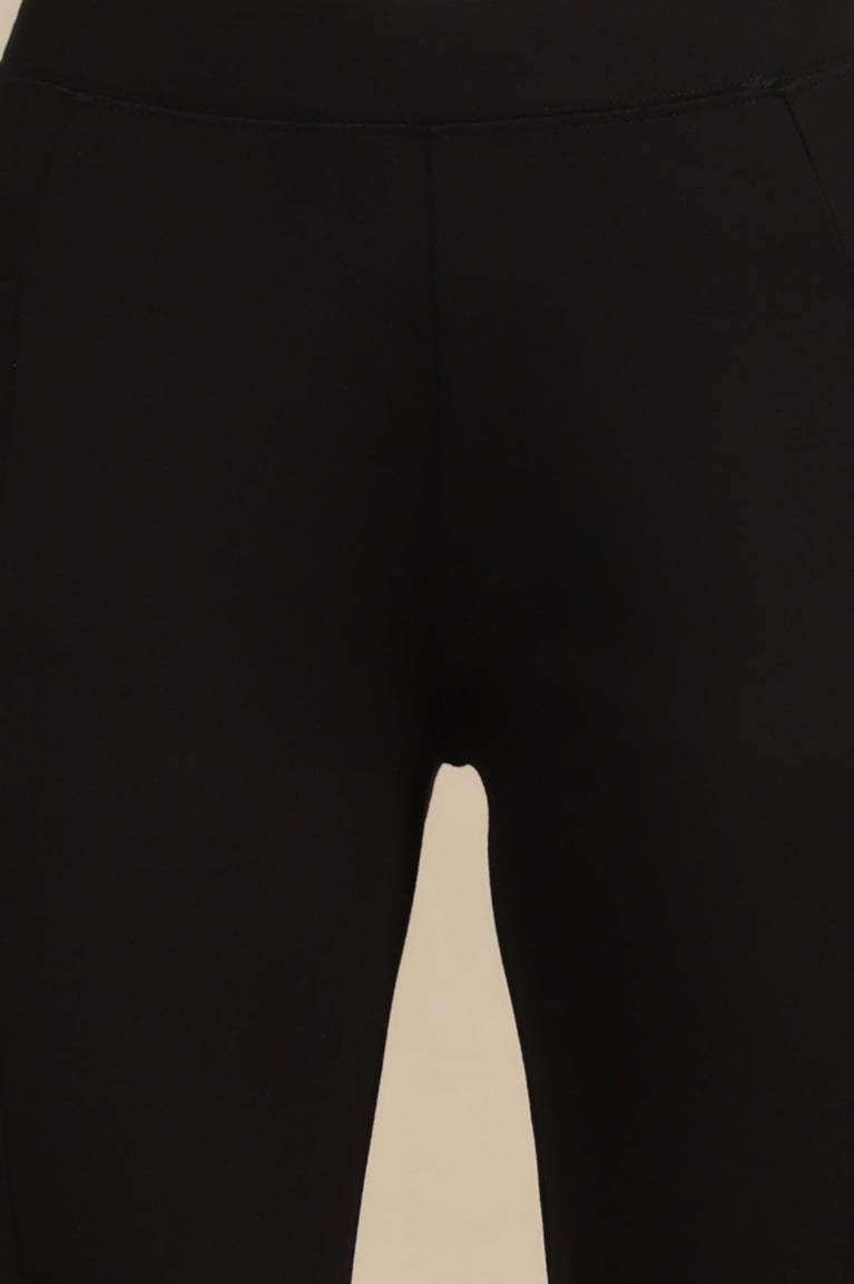 Black Solid Skinny Fit Tights With Elasticated Waist And Side Pockets