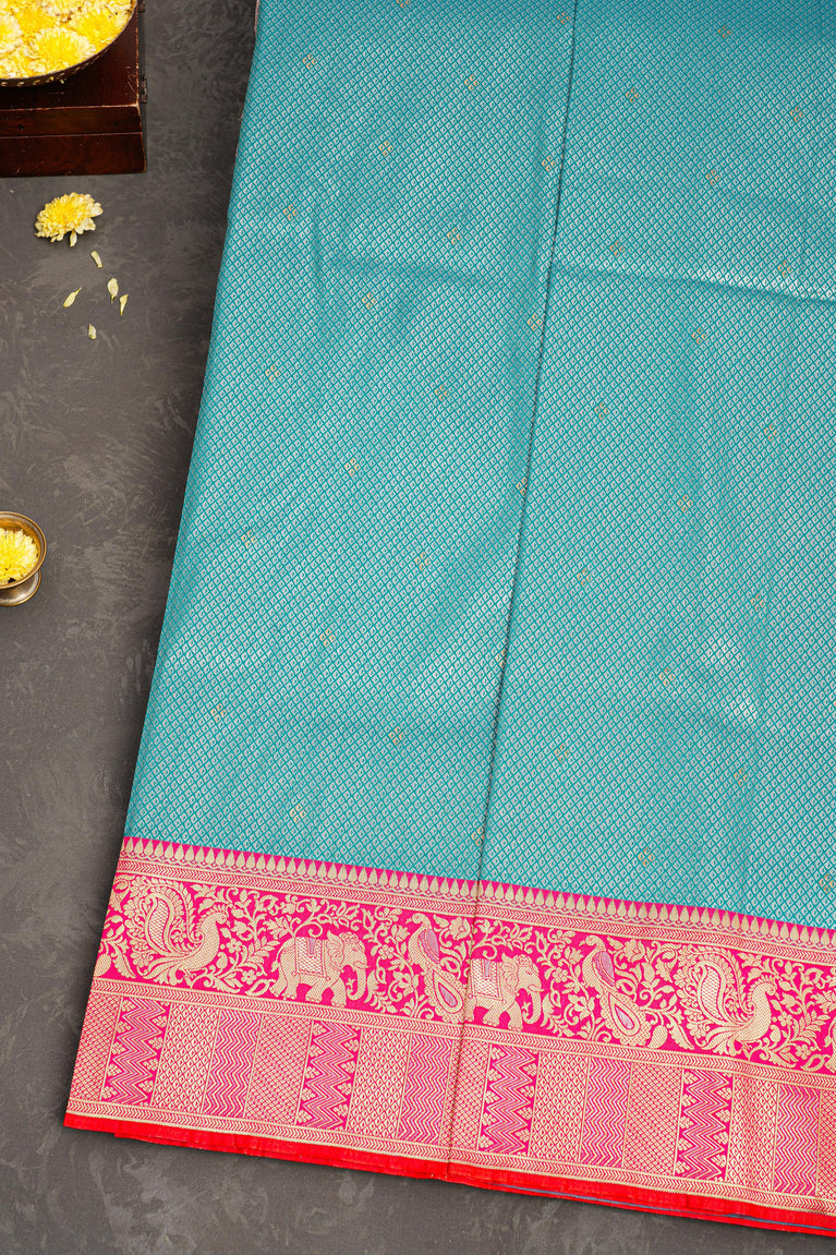 BLUE and DARK PINK CHECKS AND BUTTIS SILK Saree with BANARASI FANCY