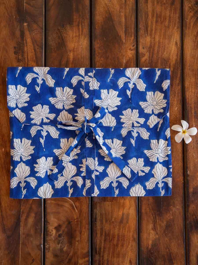 Blue Paradise Block Printed Cotton Pintuck Dress
