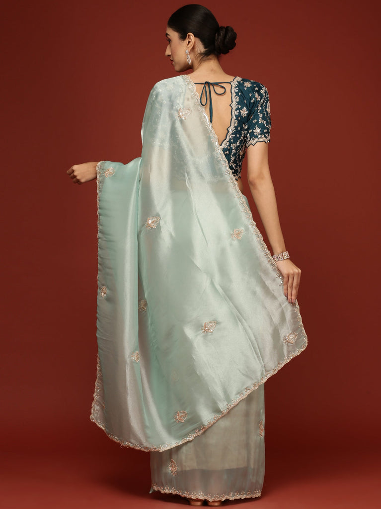 Blue Tissue Saree With Stone Work Readymade Blouse