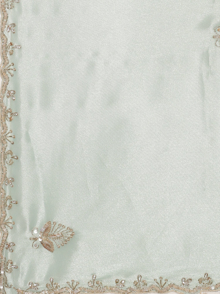 Elevate your style with this Blue Tissue Crop Top and Palazzo Three-Piece Set. Crafted from lightweight tissue fabric, it offers breathable comfort and a graceful drape. The crop top pairs seamlessly with flowing palazzo pants and a matching dupatta, creating a coordinated look perfect for festive occasions or casual outings. Enjoy effortless elegance and freedom of movement while making a bold fashion statement.