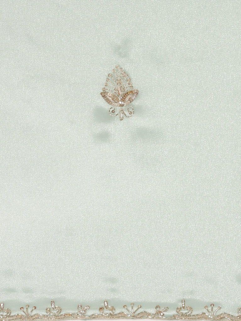 Elevate your ethnic wardrobe with this exquisite blue tissue ghagra set, meticulously crafted with intricate hand embroidery. The lightweight tissue fabric drapes beautifully, offering comfort without compromising on elegance. Each piece showcases detailed embroidery work that reflects traditional artisanal craftsmanship. Perfect for weddings, festivals, and special occasions, this set combines timeless design with contemporary appeal. The rich blue hue complements various skin tones, while the hand-embroidered details add a distinctive touch that sets it apart from mass-produced alternatives. An investment in quality ethnic fashion that celebrates heritage and artistry.