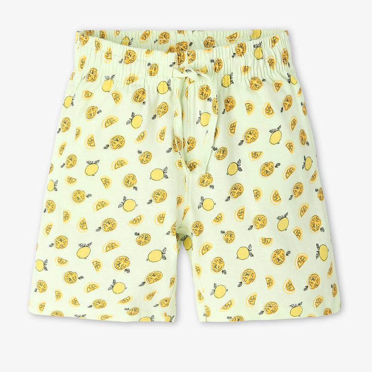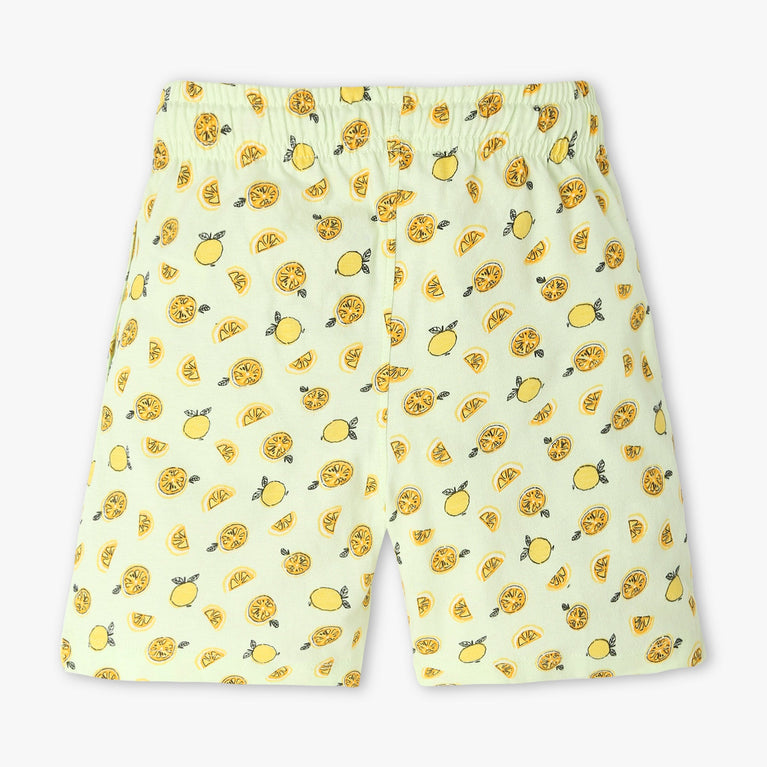 These boys' all-over print knee-length shorts are crafted for comfort and style, making them a versatile addition to any young wardrobe. Made from 100% cotton, these shorts are breathable and gentle on the skin, ensuring all-day comfort. The playful print adds a fun element, perfect for active days or casual outings.