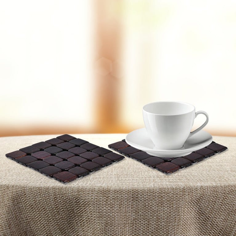 Checkered Bamboo Trivet Set of 2- Brown