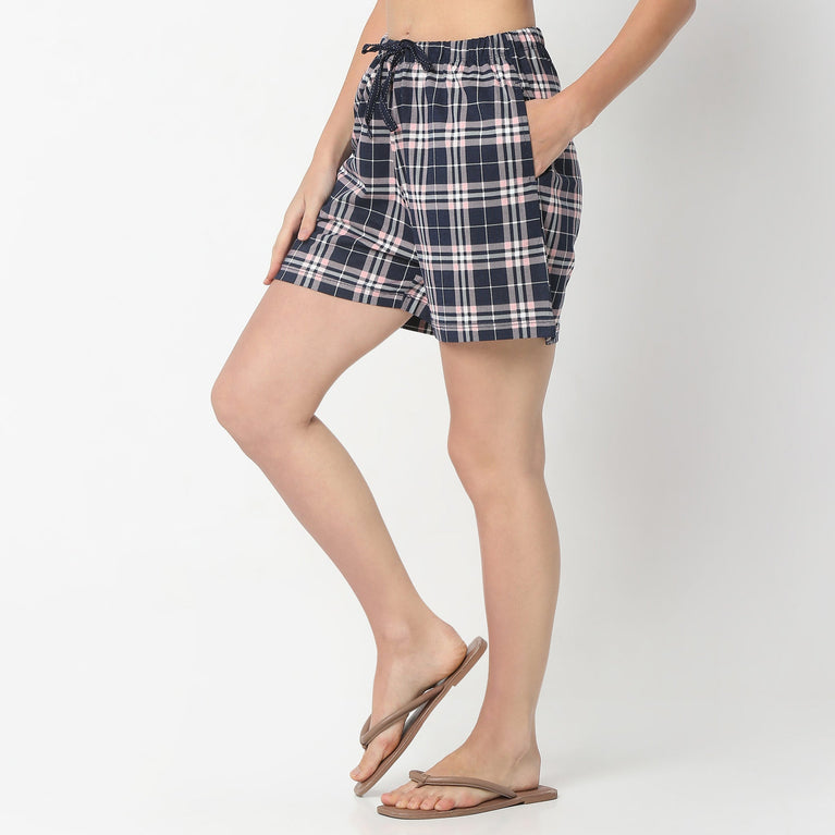 Checkered Above Knee Mid Rise Lounge Shorts