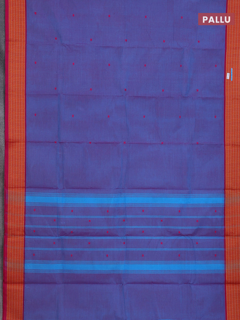 Chettinad cotton saree dual shade of cs blue and dual shade of maroon with thread woven buttas and thread woven simple border