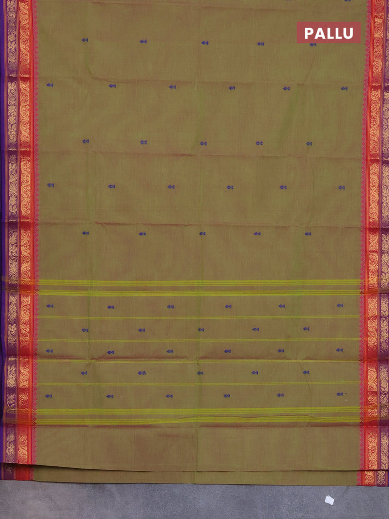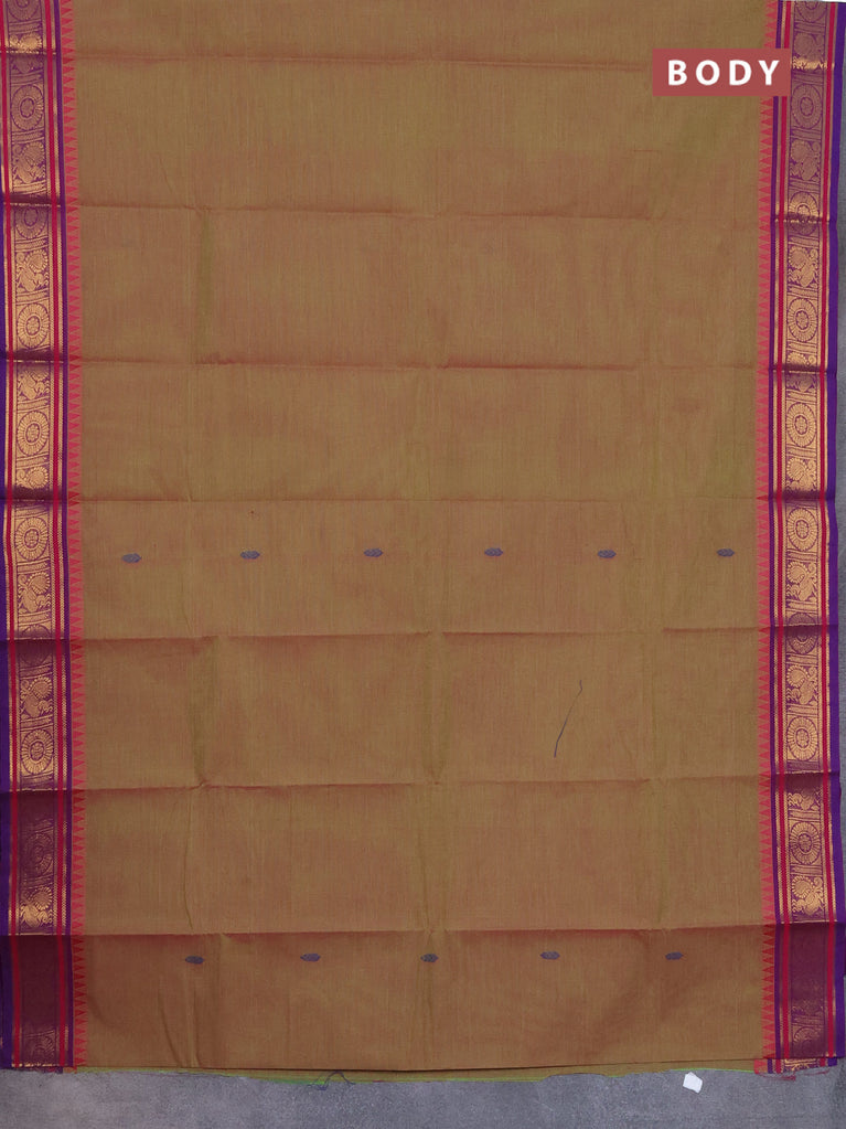 Chettinad cotton saree dual shade of manthulir green and mustard green with thread woven buttas and thread woven border